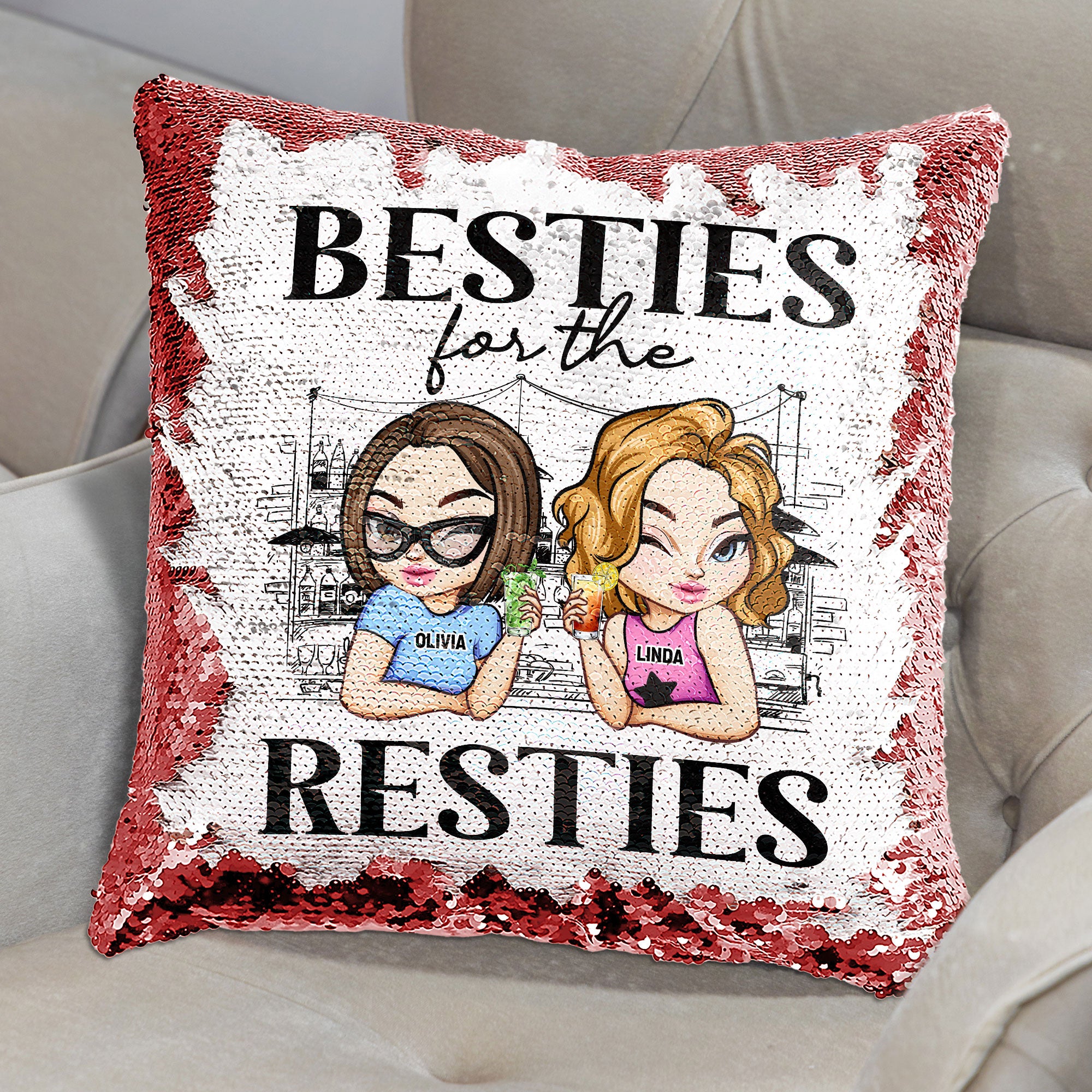 Besties For The Resties Gift For Friends – Custom Sequin Pillow