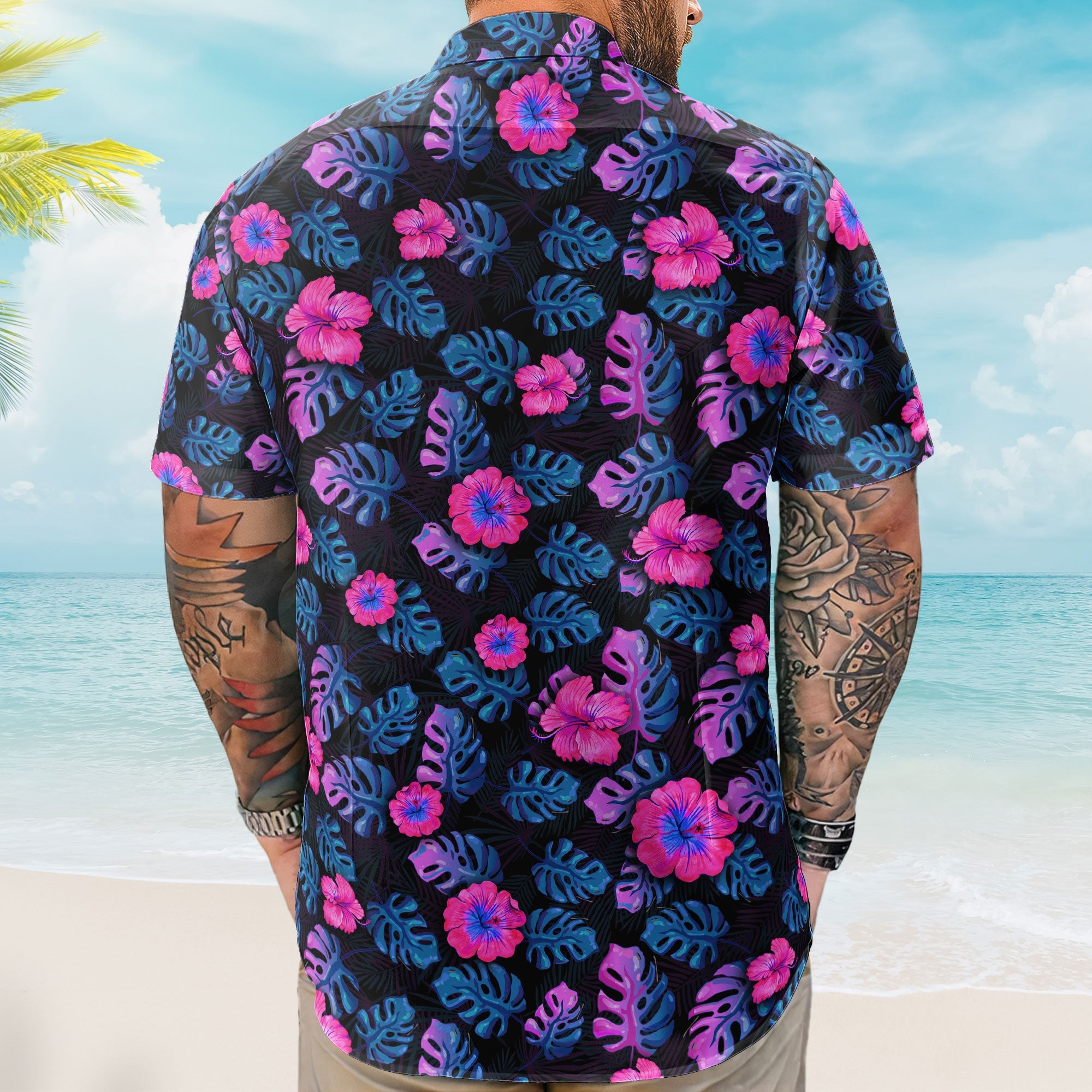Ideal for gifting, the Personalized Photo Aloha Shirt is a thoughtful and humorous present for your boyfriend, husband, dad, grandpa, boss, coworker, papa, or any beloved men, women in your life. The shirt is adorned with beach fruits, flowers, and playful elements, making it a one-of-a-kind statement piece.