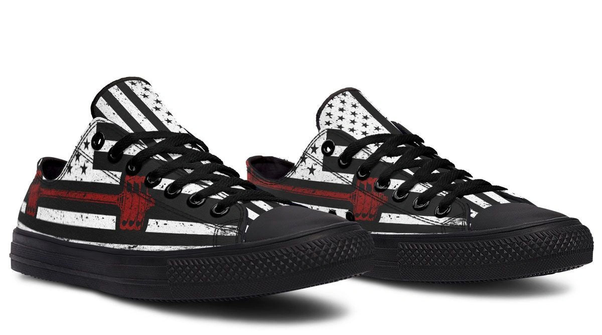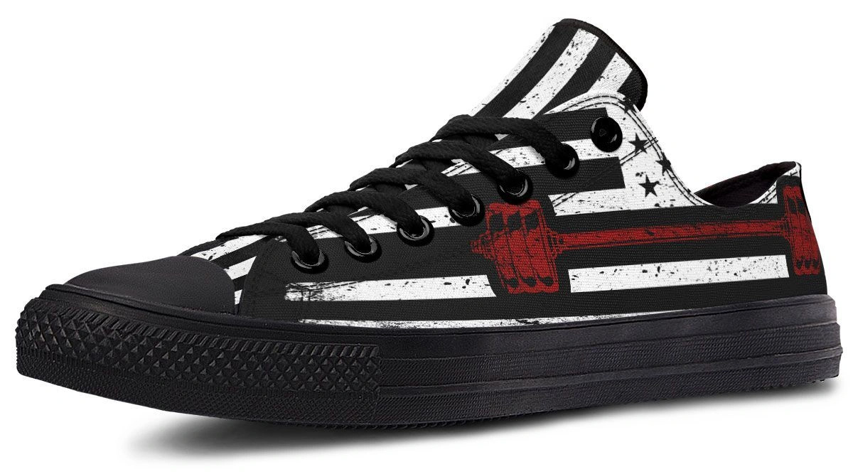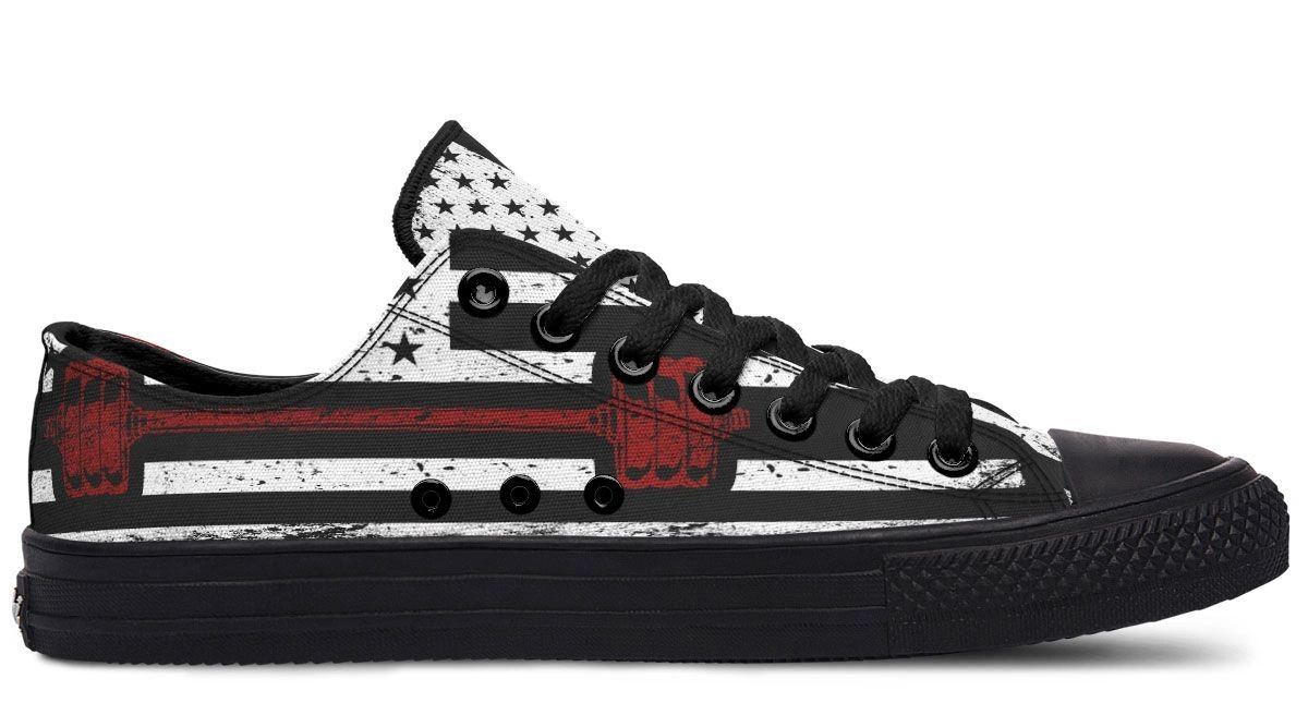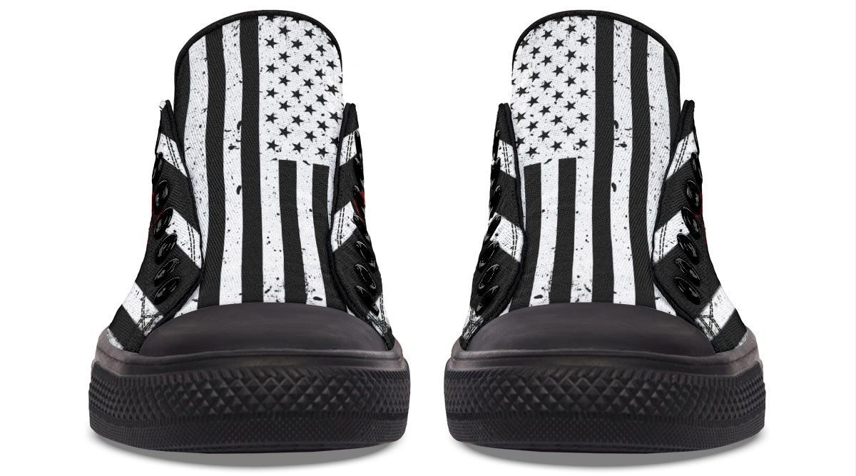 Combine strength and style with the Monochrome American Flag & Dumbbell Fitness Sneakers. Featuring a unique black and white flag pattern integrated with a dumbbell motif, these sneakers are designed for those who live the fitness lifestyle. The low-top design offers freedom of movement, while the high-traction rubber sole ensures stability during workouts or urban adventures. Made with breathable fabric and a reinforced toe cap, these shoes provide the perfect balance of comfort and longevity. Stand out in the weight room or on the streets with this striking, high-performance footwear.